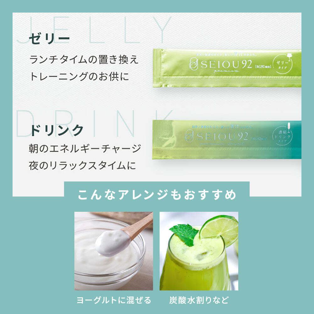 「美味しい」はもちろん、「健康的」なライフスタイルを楽しむために、どんなシーンでも大活躍のアイテムです。おやつやデザートとしてはもちろん、忙しい日の栄養補給にも最適。あなたの毎日をより豊かにする、SEIOU92プレミアムゼリーをぜひお試しください!